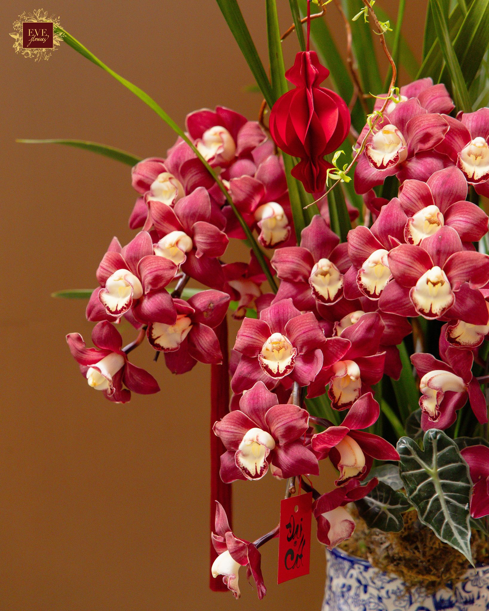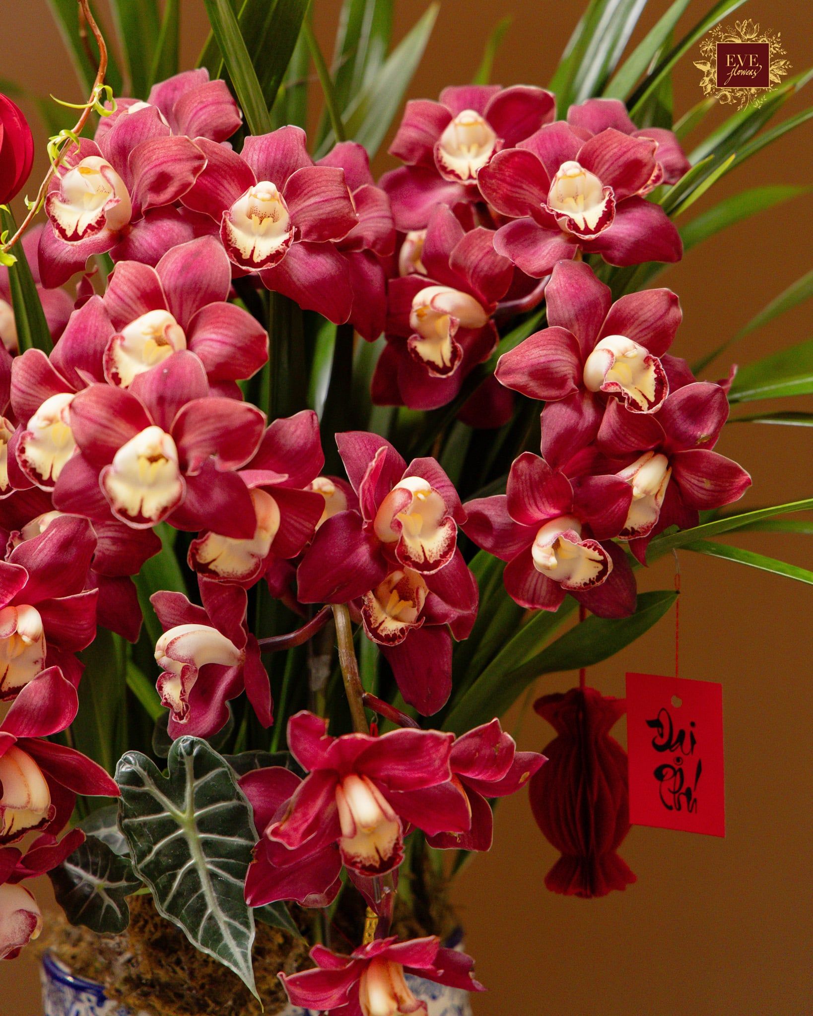 Sản phẩm được thiết kế từ địa lan kết hợp cùng nhiều loại cây xanh và phụ kiện trang trí, tạo tổng thể hài hòa và sang trọng.