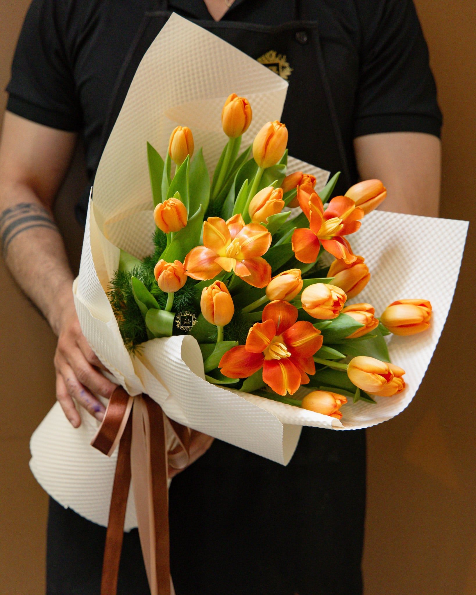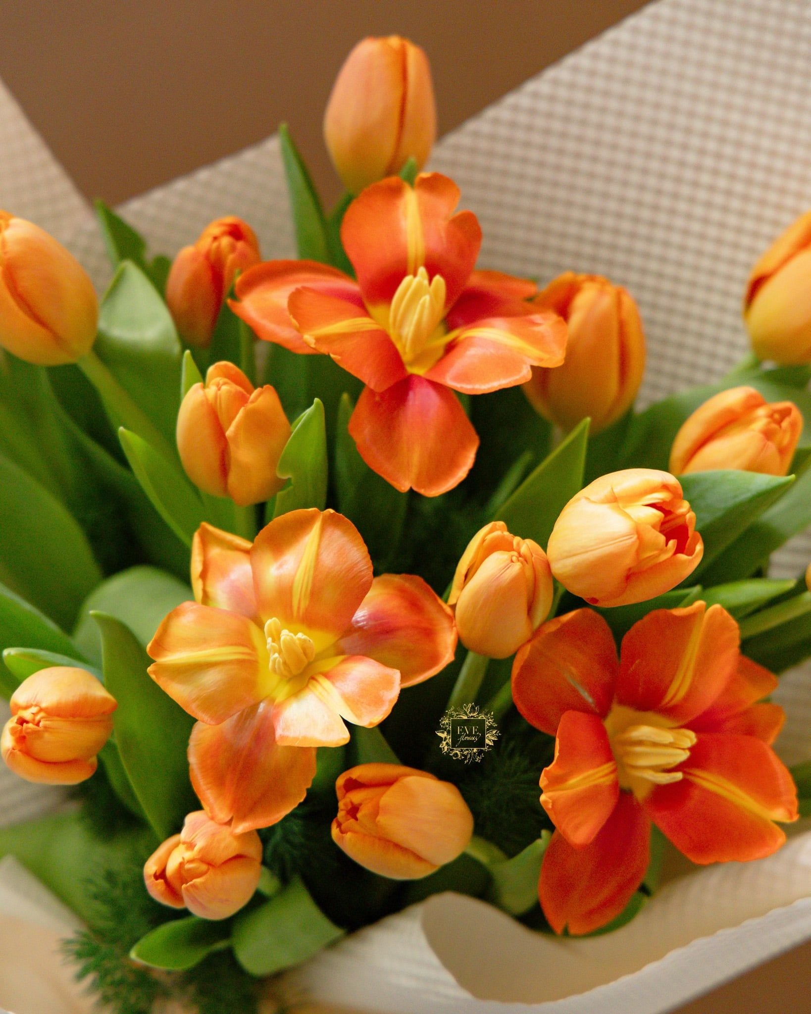 Sản phẩm được thiết kế từ những bông tulip cao cấp nhập khẩu và được phối theo màu sắc sang trọng tinh tế, tạo chiều sâu và điểm nhấn riêng biệt.