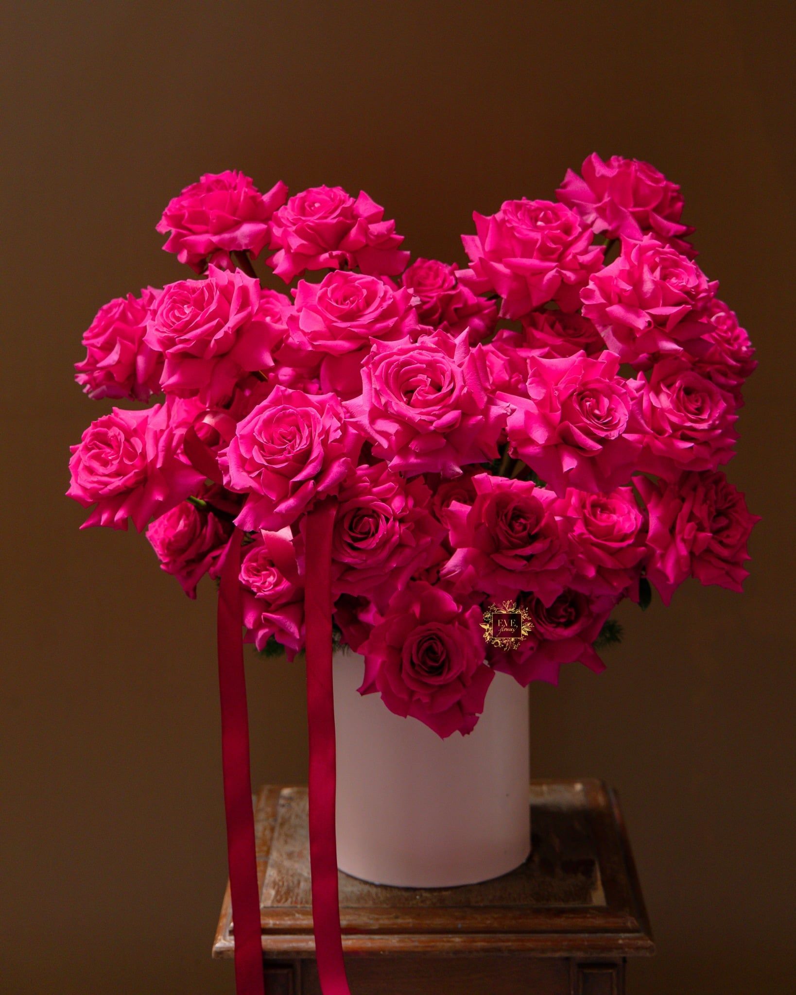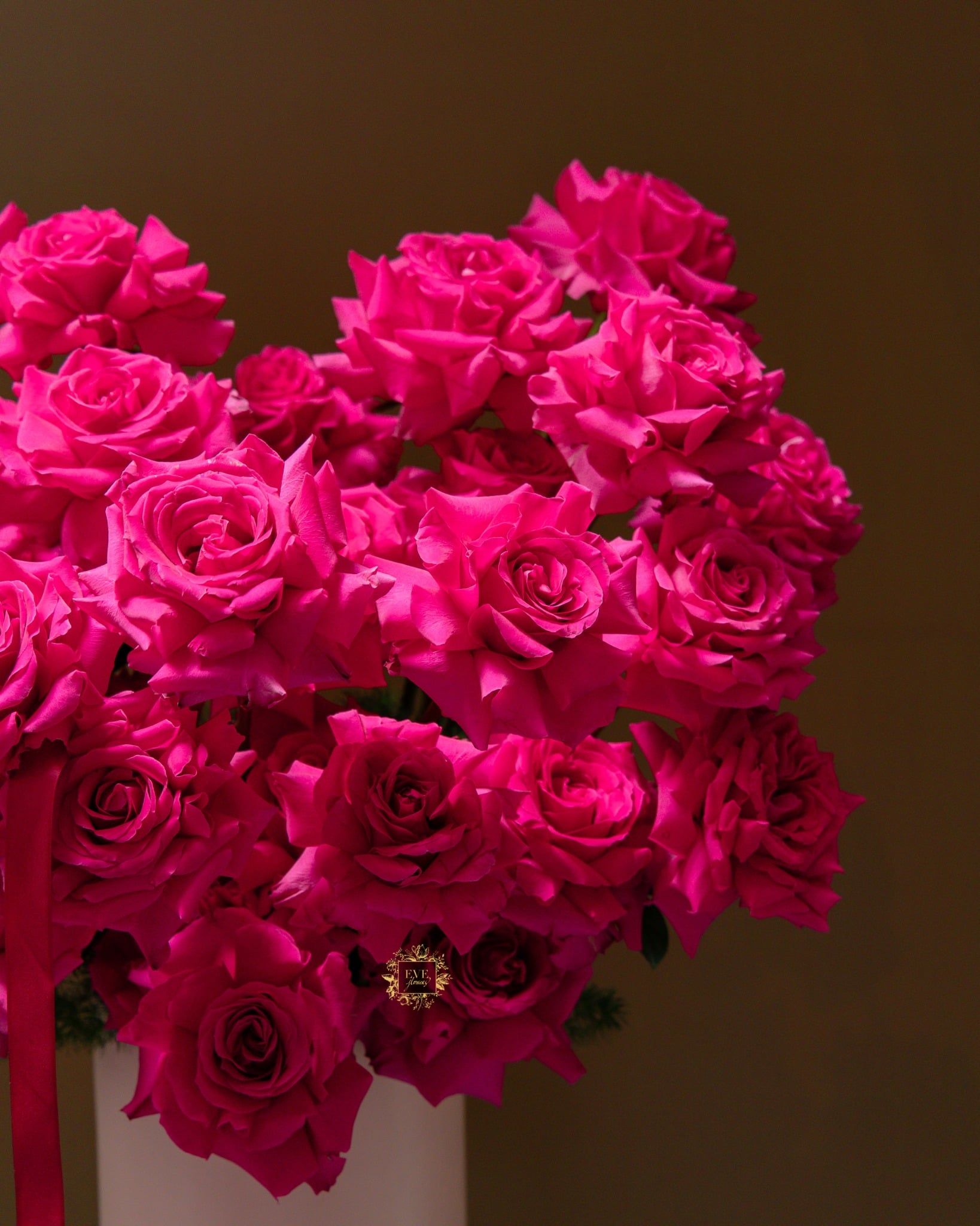 Sản phẩm được thiết kế từ dòng hoa cao cấp là hoa hồng Ecuador và được cắm thiết kế thành hình trái tim.