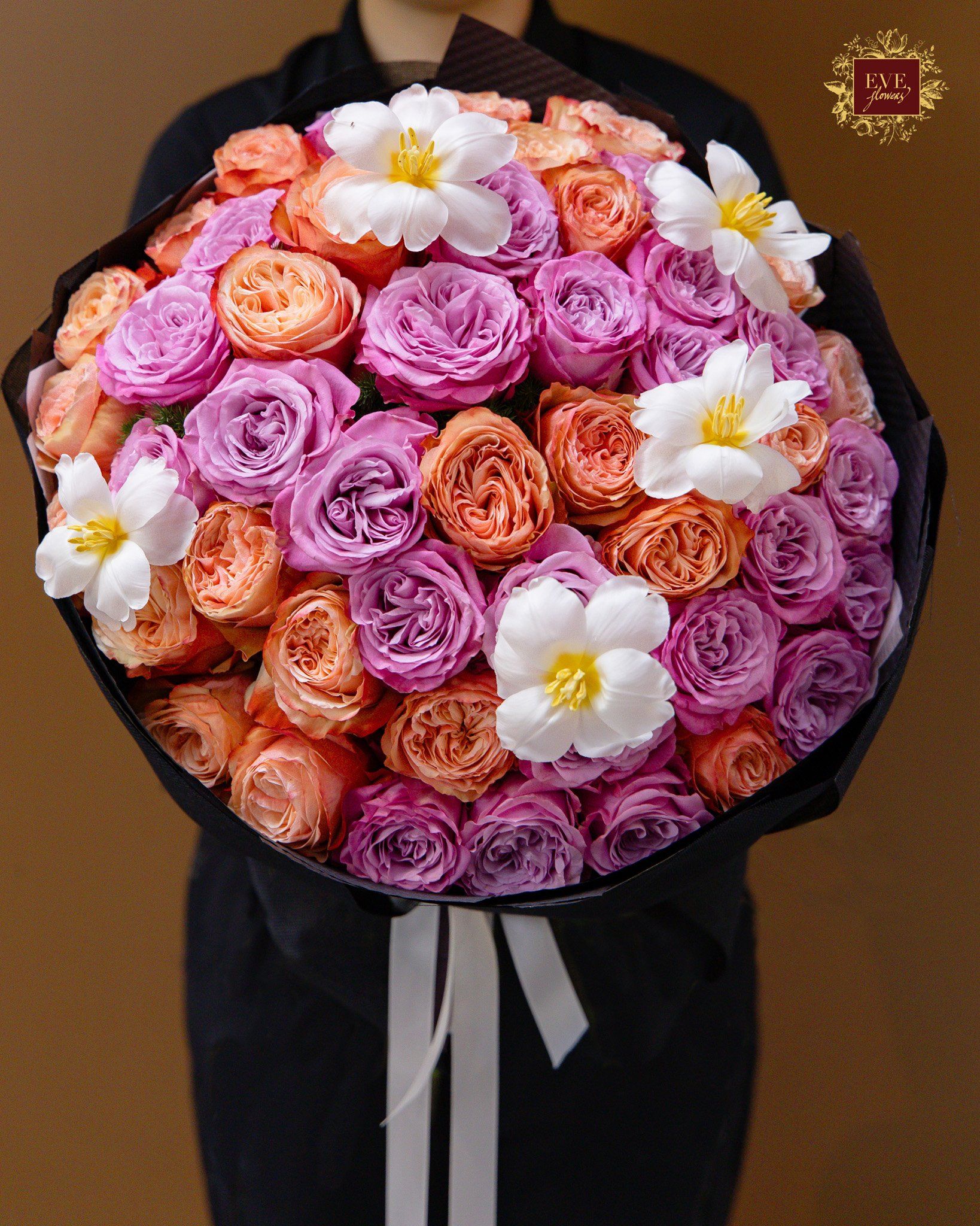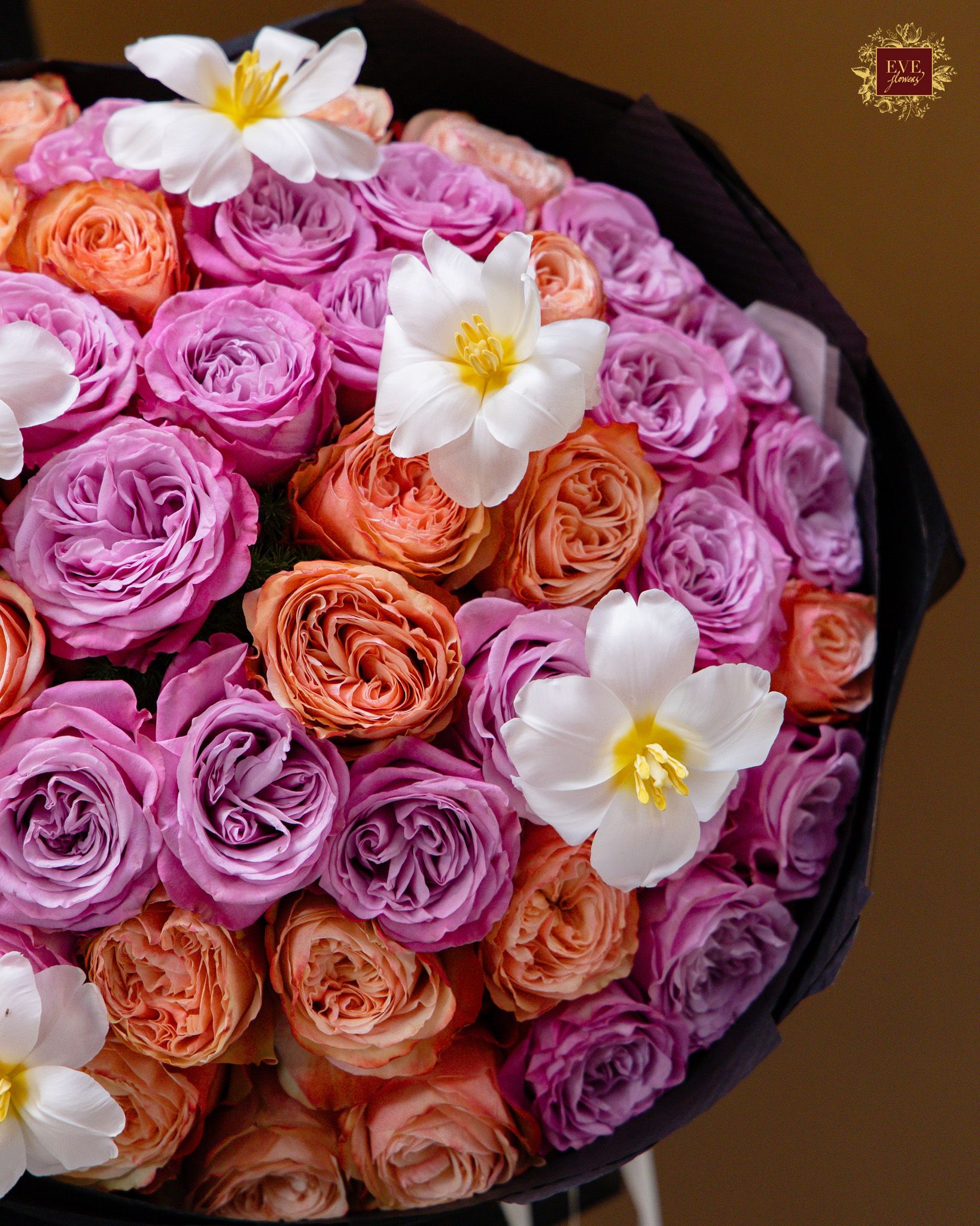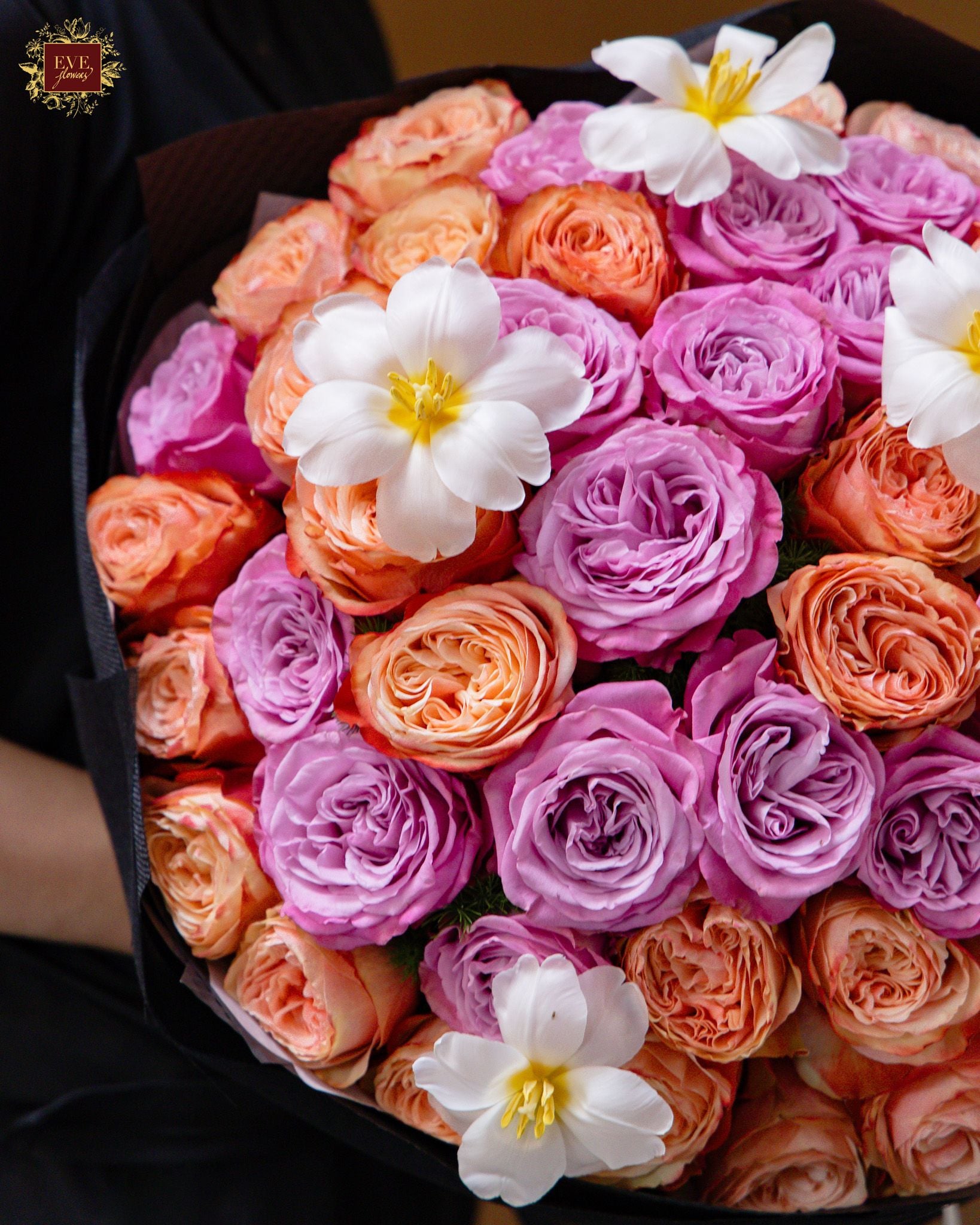 Sản phảm được làm từ hoa hồng Ecuador và tulip Hà Lan