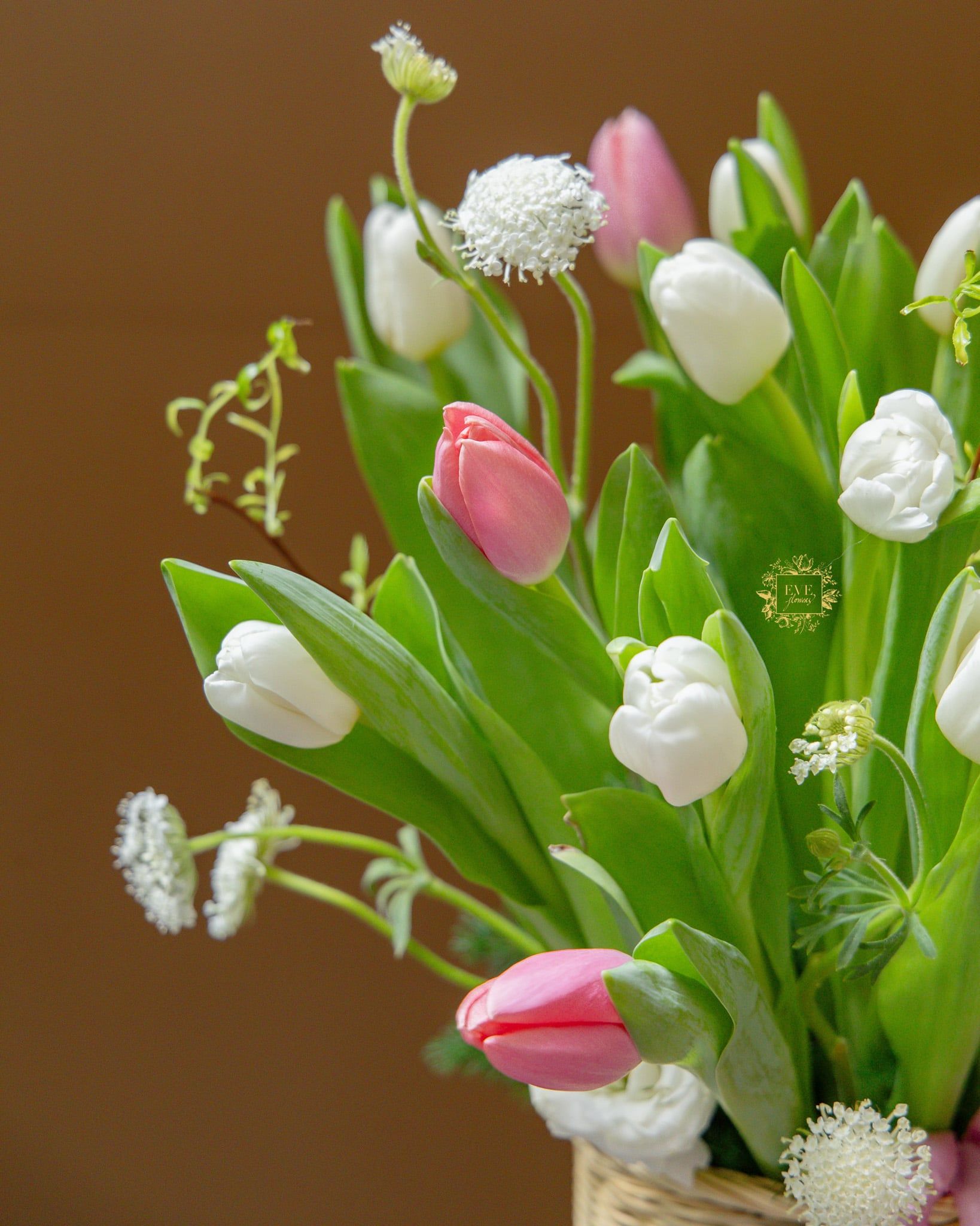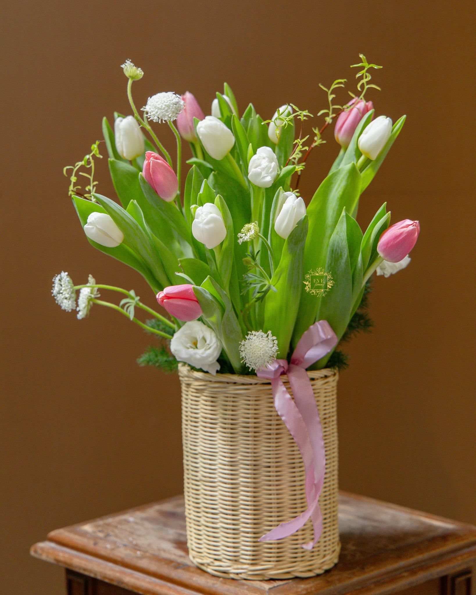 Sản phẩm được thiết kế từ những bông tulip cao cấp nhập khẩu và được phối theo màu sắc sang trọng tinh tế, tạo chiều sâu và điểm nhấn riêng biệt.