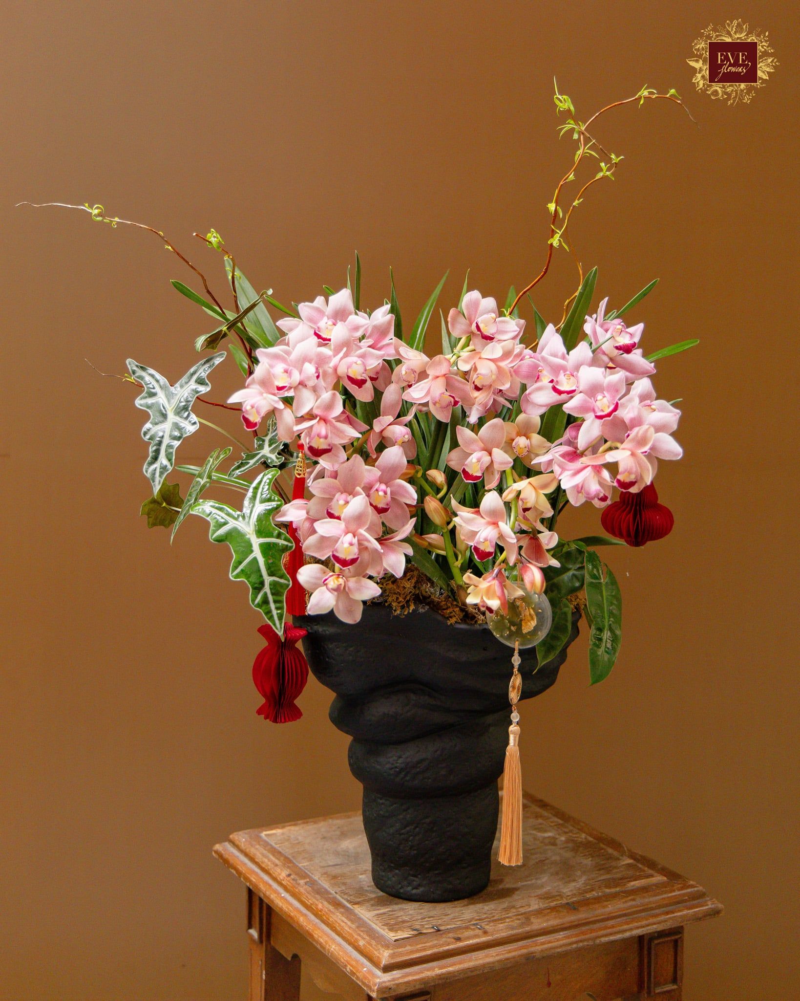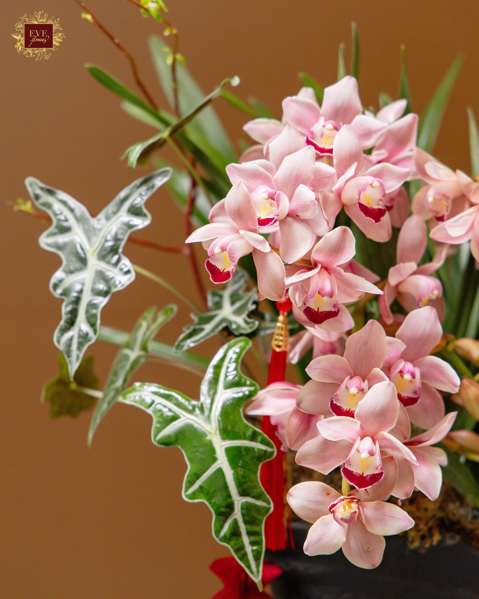 Sản phẩm được thiết kế từ địa lan kết hợp cùng nhiều loại cây xanh và phụ kiện trang trí, tạo tổng thể hài hòa và sang trọng.