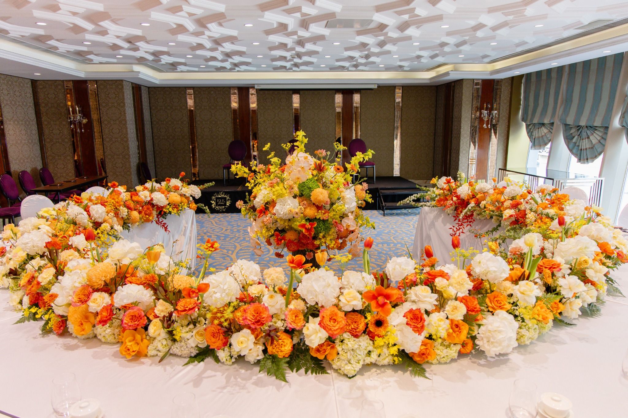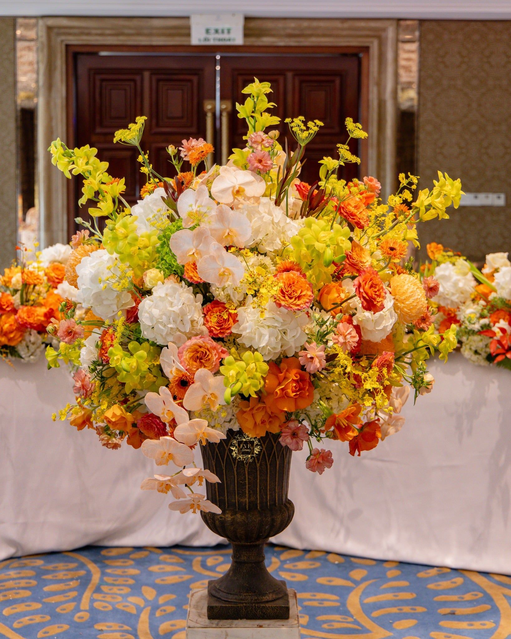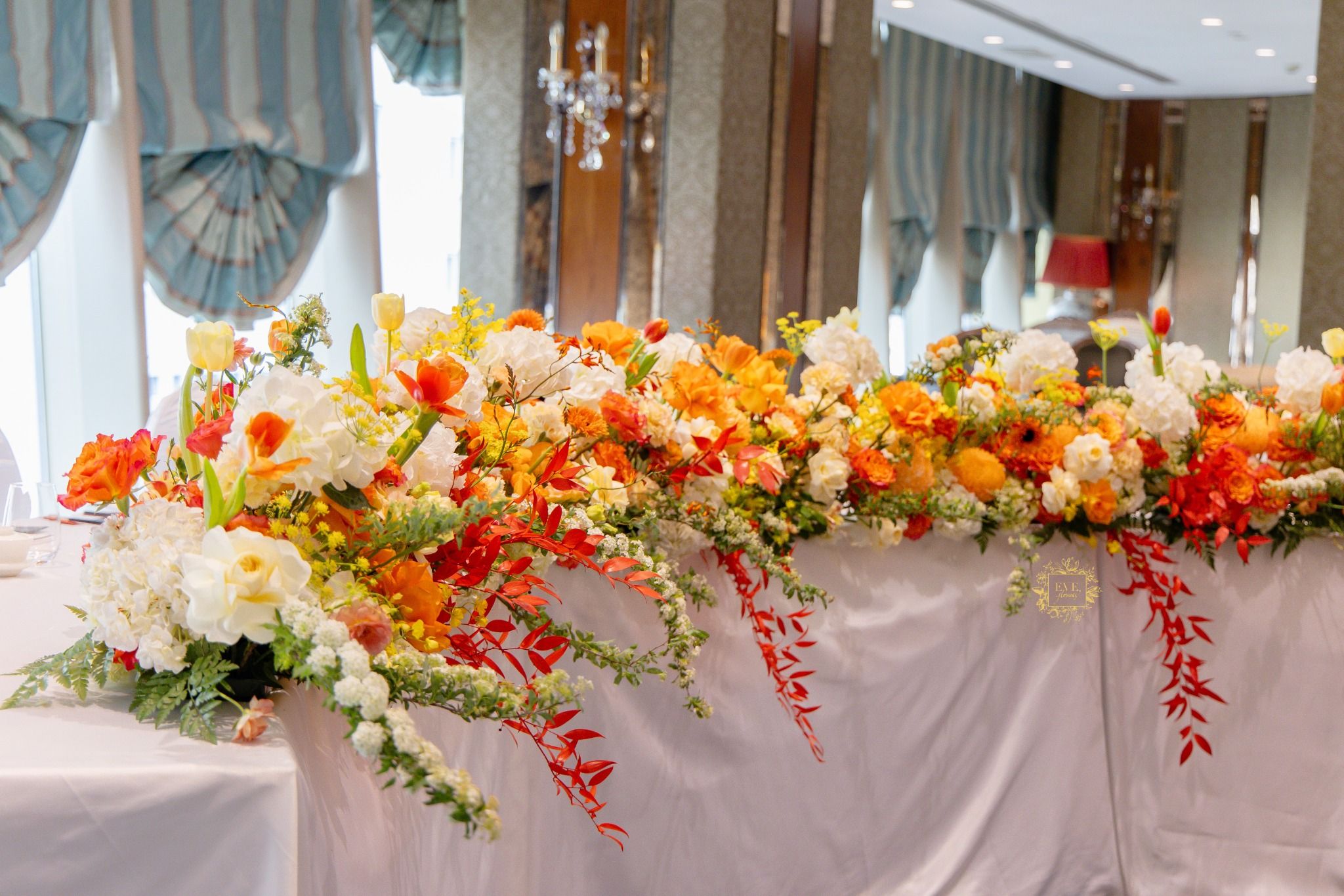 Bữa tối riêng tư được thiết kế trong không gian sang trọng kết hợp với sự hài hoa của sắc vàng - cam - trắng, nơi hoa và ánh sáng hòa quyện tạo nên một trải nghiệm đẳng cấp, ấm áp và đầy tính nghệ thuật.