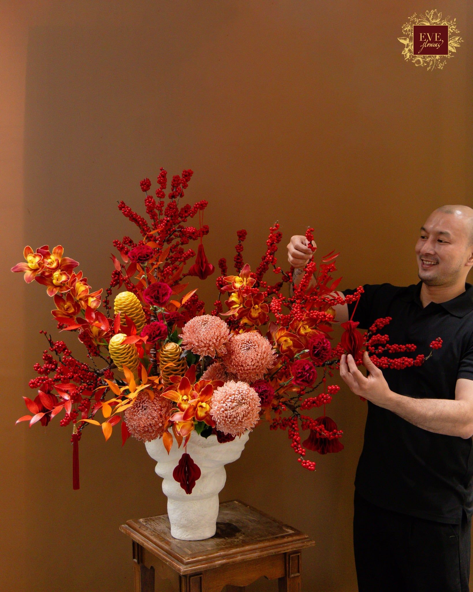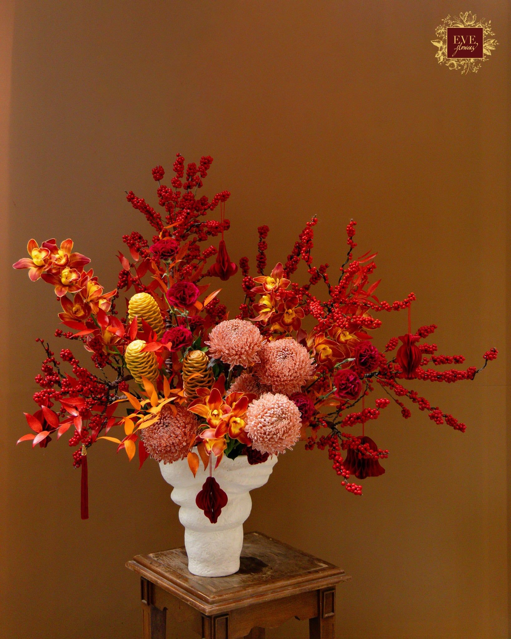 - Đào đông đỏ được thiết kế theo kiểu dáng bonsai